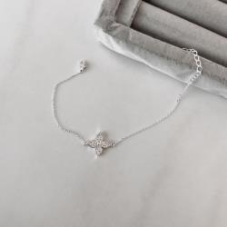 Pulseira entremeio flor cravejada 15mm 16+4cm | Mya Prata