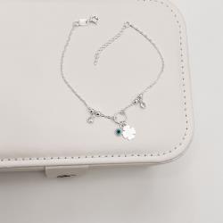 Pulseira entremeio bolas e círculo com pingentes olho grego, trevo e zircônias | Mya Prata