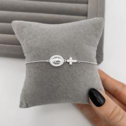 Pulseira entremeios medalha Nsa. Sra. de Guadalupe e cruz cravejada | Mya Prata