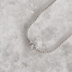 Pulseira Riviera 1.9 com zircônia coração cristal 16cm com alongadora | Mya Prata