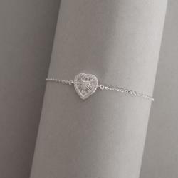 Pulseira entremeio coração cravejado 11mm corrente cadeado 16+4cm | Mya Prata