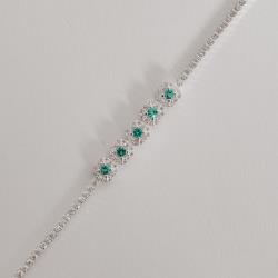 Pulseira Riviera entremeio quadrados cravejados detalhe turmalina 16+4cm