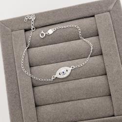 Pulseira entremeio olho com zircônias 14mm | Mya Prata
