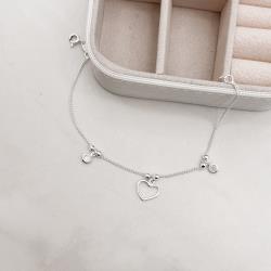 Pulseira entremeios bolas com pingentes zircônias e coração | Mya Prata