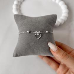 Pulseira entremeio bolas com pingente coração vazado 11mm
