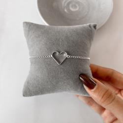Pulseira entremeio coração vazado 16mm | Mya Prata