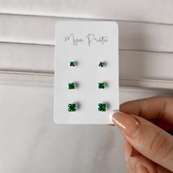 Trio zircônias quadradas 3, 4 e 5mm esmeralda | Mya Prata