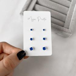 Trio zircônia redonda 3, 4 e 5mm azul bic | Mya Prata