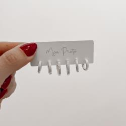 Trio argolas click 11, 13 e 15mm frente e interior cravejado duplo | Mya Prata